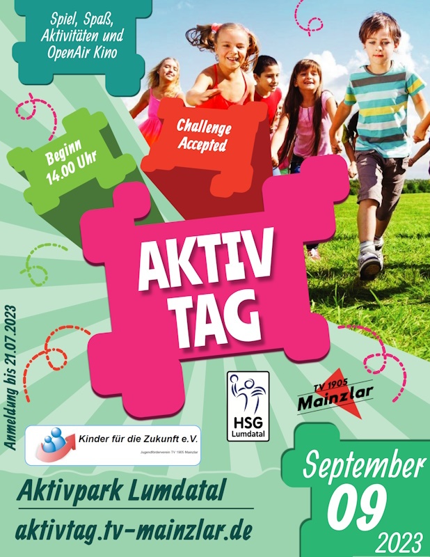 In diesem Jahr steht der Aktivtag unter dem Motto „Challenge Accepted“. In kleine Challenges können sich die Teams beweisen, wobei der Spaß und Sport im Vordergrund steht. Anders als in den Jahren zuvor startet der Aktivtag erst nachmittags um 14:00 Uhr. Wir planen ein gemeinsames Abendessen um 18:00 Uhr und würden den Aktivtag gerne mit einem Open Air Kinderkino abschließen und den Aktivtag dann um 21:30 Uhr beenden.