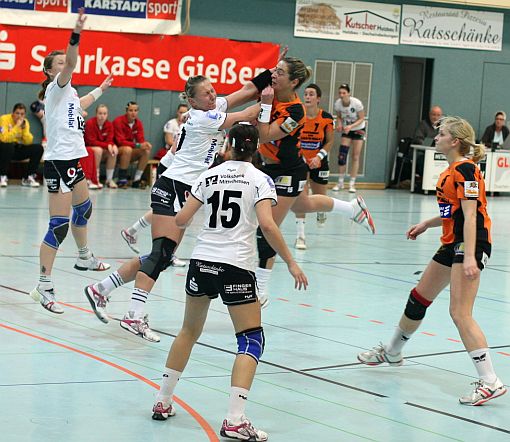 Der Gastgeber enttäuschte dagegen über die gesamten 60 Minuten, Nina Hess´ 1:0 (4.) per Hüftwurf sollte die einzige Führung in der Partie der 2.Frauenhandball-Bundesliga Süd für die Gastgeberinnen bleiben. Eine bezeichnende Situation für die ersten zerfahrenen und schwachen 30 Minuten der niveauarmen Partie spielte sich in Minute 26 ab: Andrijana Atanasoska fing einen Ball in der Abwehr ab, lief im Konter aber nur bis zur Mitte, stoppte dort unvermittelt ab und passte ins sprichwörtliche Leere, denn Gina Duketis war inzwischen schon am gegnerischen Kreis angekommen, ohne auf den Pass zu achten. Die Partie des Favoriten Mainzlar gegen Nellingen zeichnete sich über die ganze Partie durch unzählige Ballverluste, Fehlpässe und technische Fehler der Gastgeberinnen aus. Letztlich hatte es Mainzlar vor allem Torfrau Nicole Dauth zu verdanken, dass es anfangs im Spiel blieb. Mit neun Paraden in den ersten 20 Minuten hielt sie den Rückstand knapp (4:5).