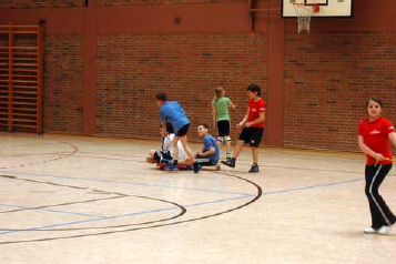 Über 100 (120) Kinder nahmen an der 1.Handballschule des TV teil. Von den Minis (5-8 Jahre) bis zur A-Jugend (17 und 18 Jahre) waren alle Altersgruppen vertreten. Die sportlichen Aktivitäten fanden parallel in 2 Sporthallen statt (Staufenberg und CEBS). Es waren über 15 Übungsleiter und Trainer im Einsatz und viele Eltern hatten für das leibliche Wohl der Kinder gesorgt.