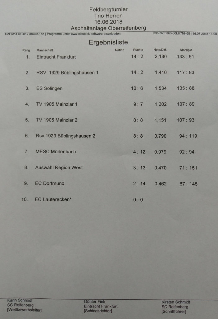 Auch am vergangenen Wochenende (16. + 17.06.2018) waren unsere Eisstockschützen wieder einmal erfolgreich gewesen.