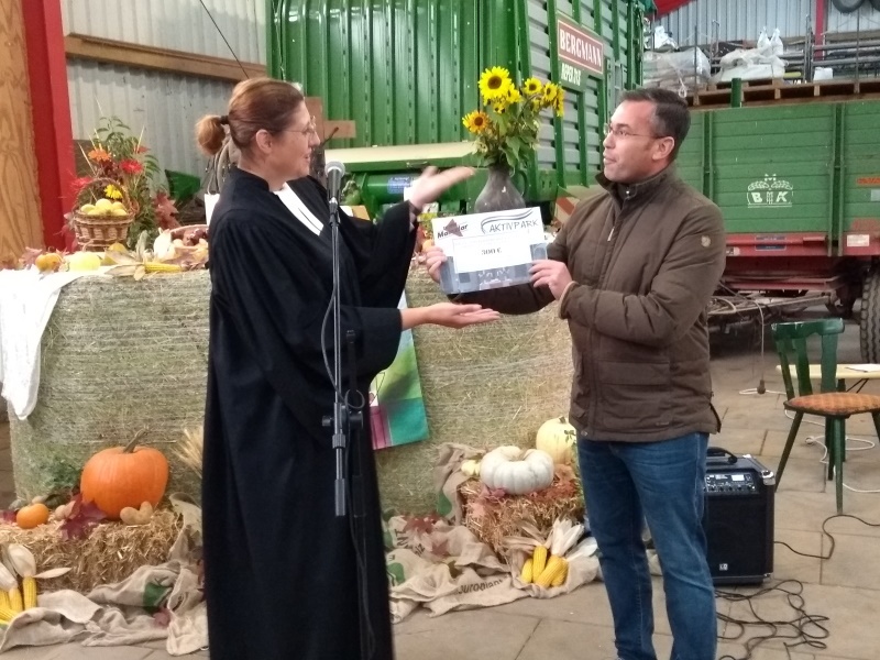 Die Pfarrerin Sarah Kiefer hielt eine Predigt zum Erntedank, die anwesenden Kinder konnten an einem Kindertisch dazu passende Mandalas ausmalen und der Kirchenvorstand organisierte zusammen mit der Familie Grölz im Anschluss an den Gottesdienst ein gemütliches Beisammensein inklusive einer kleinen Stärkung.
