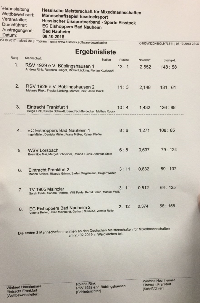 Am gestrigen Montag (09.10.2018) nahm der TV 1905 Mainzlar e.V. das erste mal an der Hessischen Meisterschaft für Mixedmannschaften in Bad Nauheim teil.