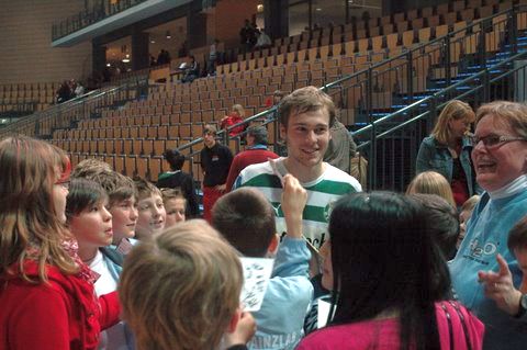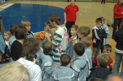 Nach dem Spiel gingen die Jugendlichen und Kinder auf Autogrammjagd. Kevin Schmidt war von den Kinder und Jugendlichen stark umlagert und stand für Autogrammwünsche und Fragen lange zur Verfügung. Nach einem schönen und erfolgreichen Abend ging es mit den Bussen zurück nach Mainzlar. Wer sich für die Jugendarbeit des TV Mainzlar interessiert, der sollte sich heute schon den 9. Mai 2009, 15.00 Uhr vormerken, da präsentiert der TV 1905 Mainzlar seine Kinder- und Jugendarbeit in einer Jugendgala in der Clemens-Brentano-Europa-Schule, Lollar.