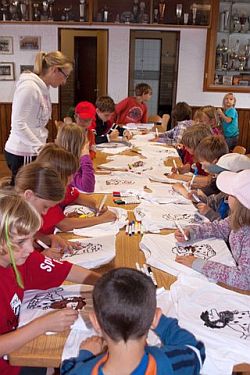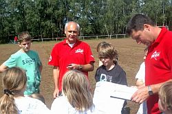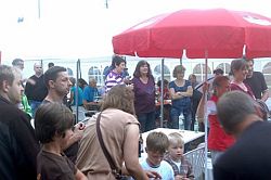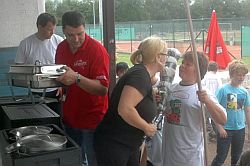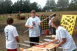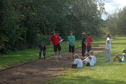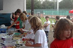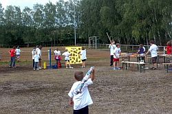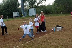 Hier konnte unter anderem ein Campshirt selbst gestaltet werden, Sandbilder erstellt werden, Keulen aus Isoliermaterial gebastelt und Pfeil und Bogen unter der Anleitung von Axel Lührmann-Hoffmann, selbst gebaut werden. Zur Mittagszeit war Spaghetti essen angesagt. Dank an Antje Vogel für die Unterstützung. Nach einer kurzen Pause wurden Teams aus den verschiedensten Altersklassen zusammengestellt. Es ging auf eine Rallye durch Wiesen, Felder bis zur Burg und es mussten eine Menge Aufgaben abgearbeitet werden. Zwischendurch waren auch Sprung-, Wurf- und Laufaktivitäten möglich, die man für die Erlangung des „Deutschen Sportabzeichens“ benötigt. Am Abend wurde ab 19.00 Uhr gegrillt. Auch einige Eltern und Interessierte konnten begrüßt werden.