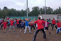 Nach dem Frühstück stand Frühsport auf dem Programm und auch der Camptanz wurde von Karina Müller und Carina Schwalb mit den Teilnehmern eingeübt. Danach standen verschiedene Workshops zur Verfügung.