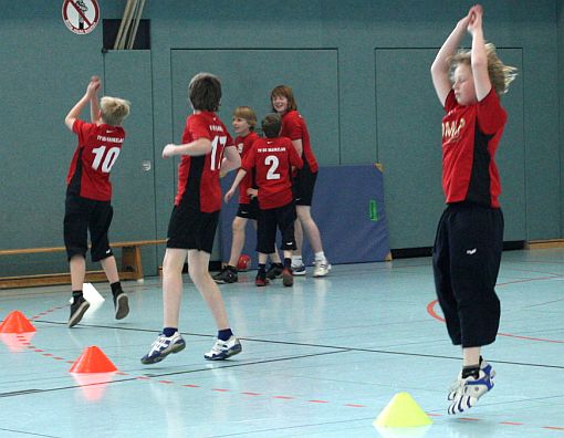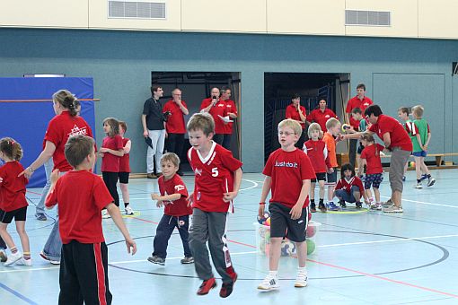Die jungen Handballer der Minis und E-Jugend gaben Eindrücke der ersten Kontakte mit dem Handball wieder,