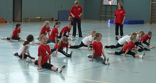 Schon etwas routienierter gingen die sieben bis zwölf Jahre alten Tänzerinnen auf das Parkett der Sporthalle.