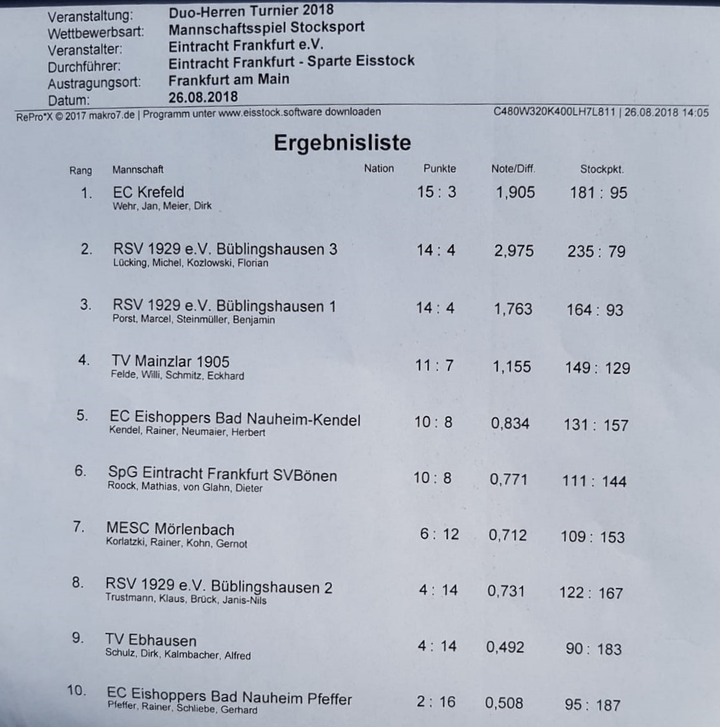 Am letzten Wochenende mussten die Eisstockschützen den Duo Pokal aus Frankfurt vom letzten Jahr verteidigen.