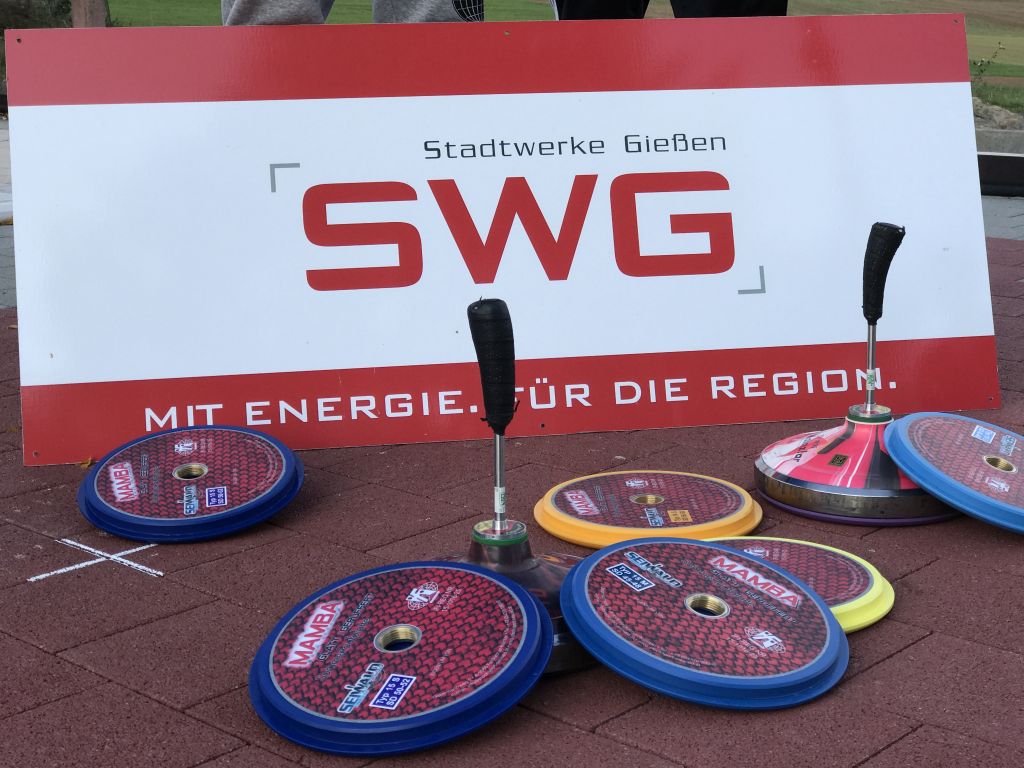 Eisstockschießen beschränkt sich längst nicht mehr auf den Winter. Spezielle Sommerbahnen aus Pflasterstein oder Teer ermöglichen es, in den wärmeren Jahreszeiten zu spielen. Dafür braucht es spezielle Sommerbeläge für die Grundplatten. Acht solcher Gleitflächen im Wert von insgesamt 600 Euro stifteten die Stadtwerke Gießen (SWG) im Rahmen ihrer Aktion „Spiel’ Dein Spiel“ speziell für die Jugendlichen, die beim TV 1905 Mainzlar e.V. trainieren. „Wir sind sehr froh über die Spende der SWG. Denn mit den neuen Platten kann sich unsere Jugendmannschaft nun noch besser auf die nächsten Wettkämpfe vorbereiten“, erklärt Björn Weil, zuständig für das Sponsoring beim TV Mainzlar und selbst in einer der Bundesligamannschaften aktiv.