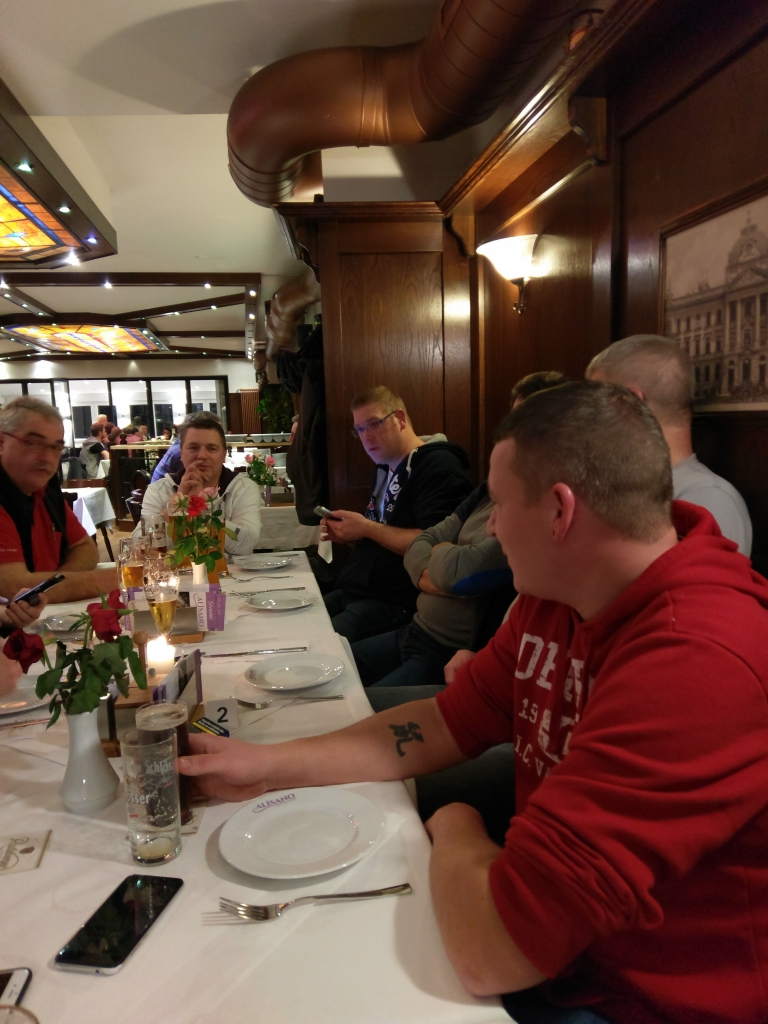 Am 01.12. war es dann endlich soweit. Unsere beiden Mannschaften machten sich gegen Mittag auf den Weg nach Krefeld um als erstes das Hotel zu beziehen. Nach dem die Zimmer bezogen waren traf man sich später noch zum Abendessen im Hotel eigenen Brauhaus. Als dort dann nach min. 2 Stunden warten auf das Essen, die letzten Magen gestillt waren, ging es auf die Zimmer um sich auf den nächsten Tag vorzubereiten. Am Samstag klingelte dann bei allen um kurz vor 06 Uhr der Wecker. Leider konnte uns das Hotel zu dieser Zeit kein Frühstück reichen und man entschloss sich noch mal eben den Bäcker in der nähe aufzusuchen. In der Rheinlandhalle angekommen, ging es dann auch gleich los für unsere beiden Mannschaften. Gespielt wurden an diesem Wochenende insgesamt 26 Spiele pro Mannschaft, wobei ein Spiel ca. 30 Minuten dauerte. Natürlich konnten nicht alle 26 Spiele am Samstag gespielt werden und so wurde festgelegt, das es am Samstag bis 18 Uhr gehen wird und die restlichen Spiele dann am Sonntag ausgetragen werden.