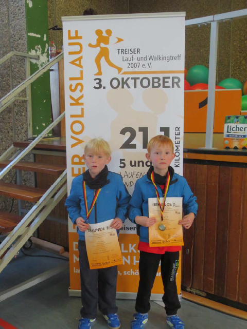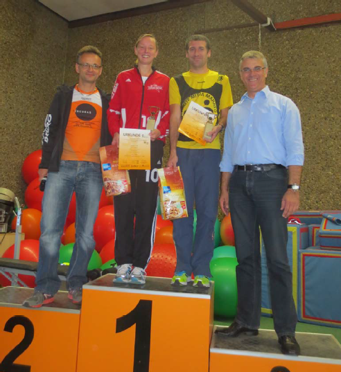 Zum ersten Mal dabei waren bei dem Bambini Kinderlauf der Altersgruppe U8 Nils (4.) und Tom (5.) Wilke, die nur knapp den Sprung in die Medaillenränge verpassten. Auf dem Treppchen gelandet ist im 1200m Kinder- und Jugendlauf Nathaniel Moore, der unserem Fotografen leider entwischt ist. Er belegte in der Altersklasse U12 einen sehr guten 3. Platz. Zuvor starteten unsere Läufer auf der 10.000 Meter Strecke, von denen wirklich jeder auf das „Treppchen“ kam. Wobei unsere einzige 10.000m Läuferin Steffi Grölz besonders hervorzuheben ist. Als beste Läuferin aller Altersklassen mit einer guten Zeit von 44:49,7 durfte sie den Ehrenpreis des Bürgermeisters entgegen nehmen.