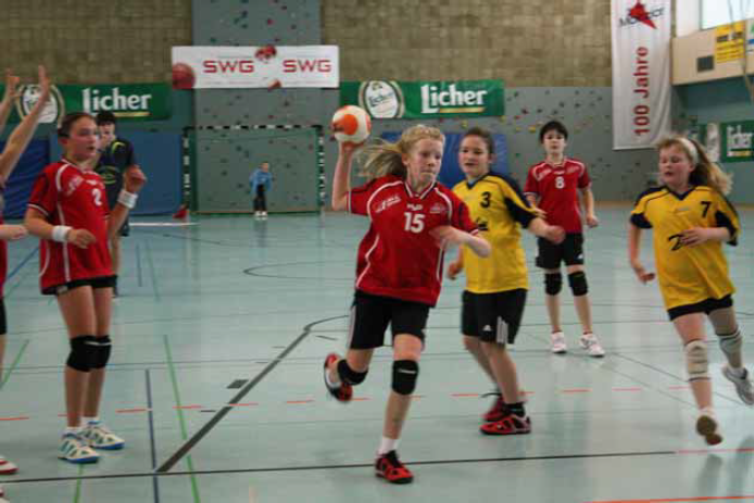 28.02.2009 ‐ Die Mädchen der E‐Jugend Mannschaft haben auch das Rückrundenspiel gegen die HSG Nordeck/Allendorf/Londorf deutlich gewonnen. Schon nach nicht einmal 10 Sekunden fiel das 1:0. Die jungen Mainzlarerinnen kündigten hiermit an, dass sie wieder konzentriert um jedes Tor kämpfen würden. Es wurde wieder sehr gut gedeckt und konzentriert angegriffen und so stand es dann auch schnell 5:0. Für die zahlreichen mitgereisten Gäste‐Zuschauer aus dem hinteren Lumdatal wurde dann schnell klar, dass Mainzlar dieses Spiel ernst nahm. Die HSG kam dann zwar auch zu ein paar Toren, aber der Halbzeitstand von 14:4 zeigte doch die klare Dominanz der Gastgeberinnen. In der zweiten Halbzeit setzten die Mainzlarer Mädchen ihr attraktives Spiel fort und erkämpften Tor für Tor. Wieder einmal fiel auf, dass die Mannschaft in der Breite sehr gut augestellt ist und die Tore von vielen unterschiedlichen Spielerinnen erzielt werden. Auch jede eingewechselte Spielerin findet sich sofort im Spiel zurecht. Mitentscheidend für die guten Spiele dieser Saison ist die gute Teamleistung. Man merkt der gesamten Mannschaft an mit welchem Spaß gespielt wird und dies wirkt sich dann wieder auf das Ergebnis aus. Im Verlauf der zweiten Halbzeit kamen die Gäste nur noch zu einem Tor, so dass zum Schlusspfiff ein komfortabler 28:5 Sieg erzielt wurde.